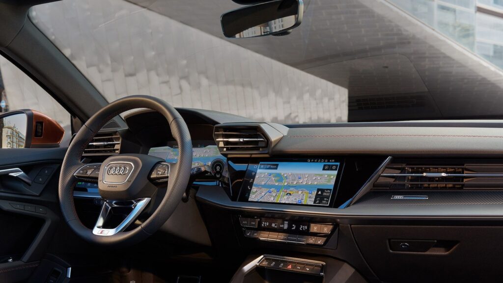 Inside, the Audi A3 Sedan offers a driver-oriented, luxurious interior that is as functional as it is stylish. The multi-coloured Ambient Light Package plus allows you to personalise the cabin atmosphere with 30 different colours. High-quality materials and intuitive digital displays, including the optional Audi virtual cockpit plus and the 10.1-inch MMI touch colour display, provide a seamless and engaging driving experience.