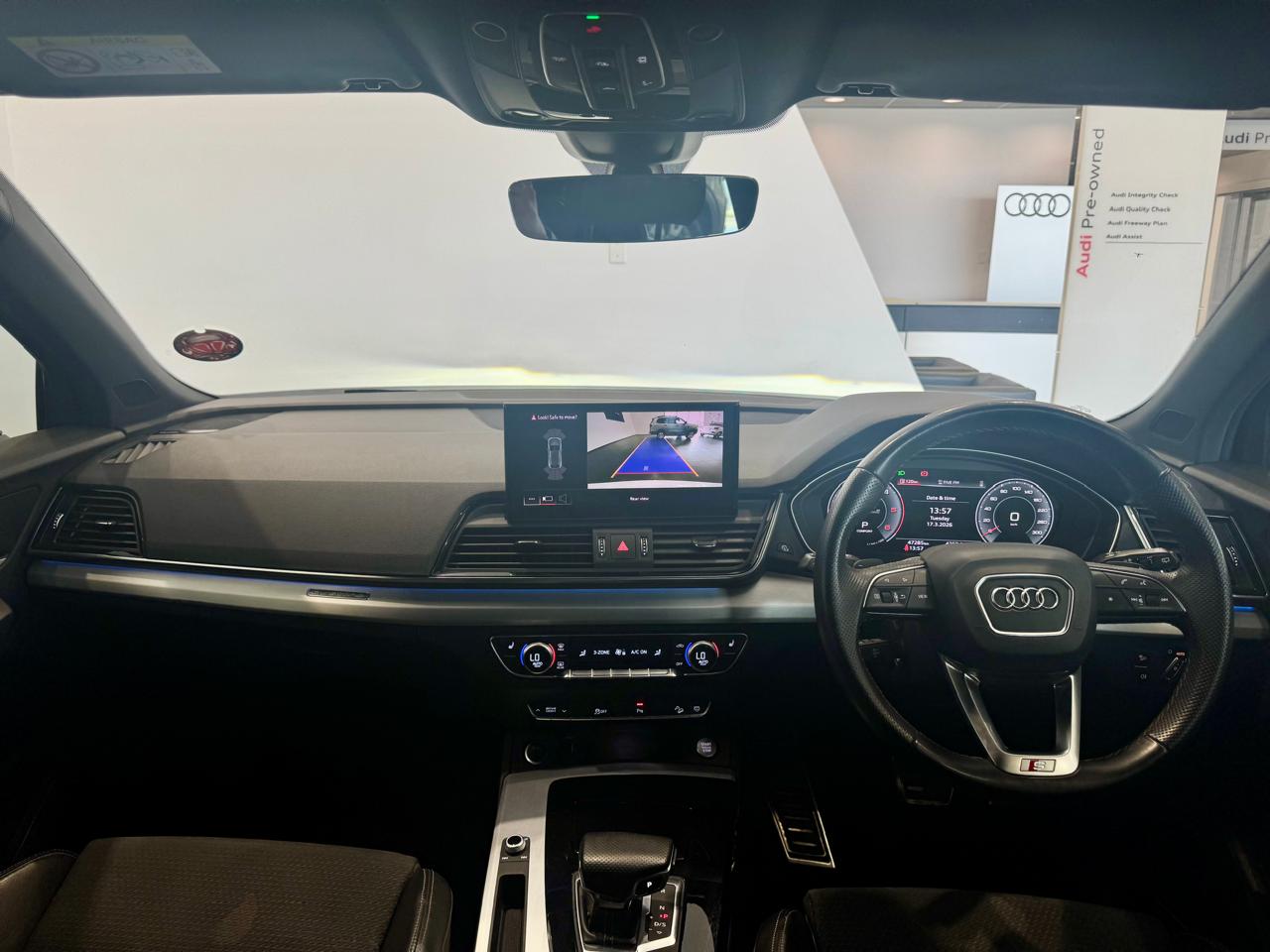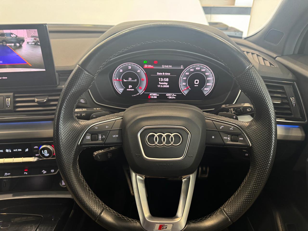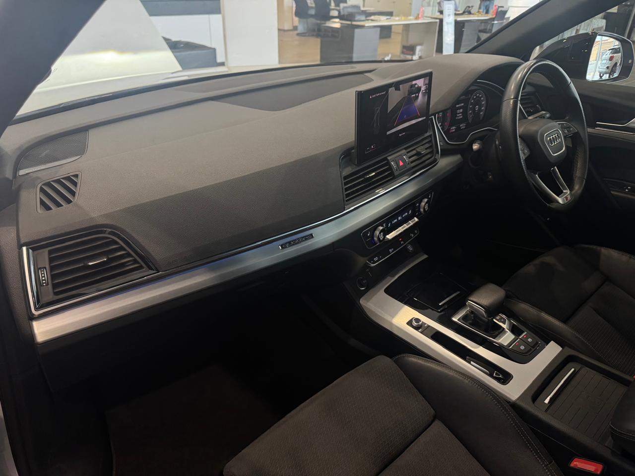 Air Conditioner, Alarm Immobiliser, Alloy Wheels, Auto lights, Bluetooth, Carpet Set, Cartrack, Central Locking, Electric Windows, Metallic Paint, Power Steering, Remainder of Service Plan, Remainder of Warranty, Reverse camera, Service History, Smart key, Sunroof, Tow Bar, Window tint. The Audi Q5 Sportback 40 TDI 140kW quattro S line S tronic is powered by a 140kW turbo-diesel engine paired with S tronic transmission and quattro all-wheel drive, and features a panoramic sunroof, dual-zone climate control, Apple CarPlay and Android Auto, cruise control, Audi Drive Select, power front seats, heated front seats, Dinamica leather combination upholstery, S line interior package, black styling package, black roof rails, black exterior mirror housings, Audi Sport alloy wheels in 5-V-spoke star design, trailer hitch, Convenience Key with sensor-controlled electric tailgate, Matrix LED headlights with LED rear lights, Bang Olufsen 3D Premium sound system, Audi Phone Box with wireless charging and mobile signal amplifier, rear USB charging interfaces, Assist Package City, Comfort Package, and an Audi Maintenance Plan covering 5 years or 100,000 km.