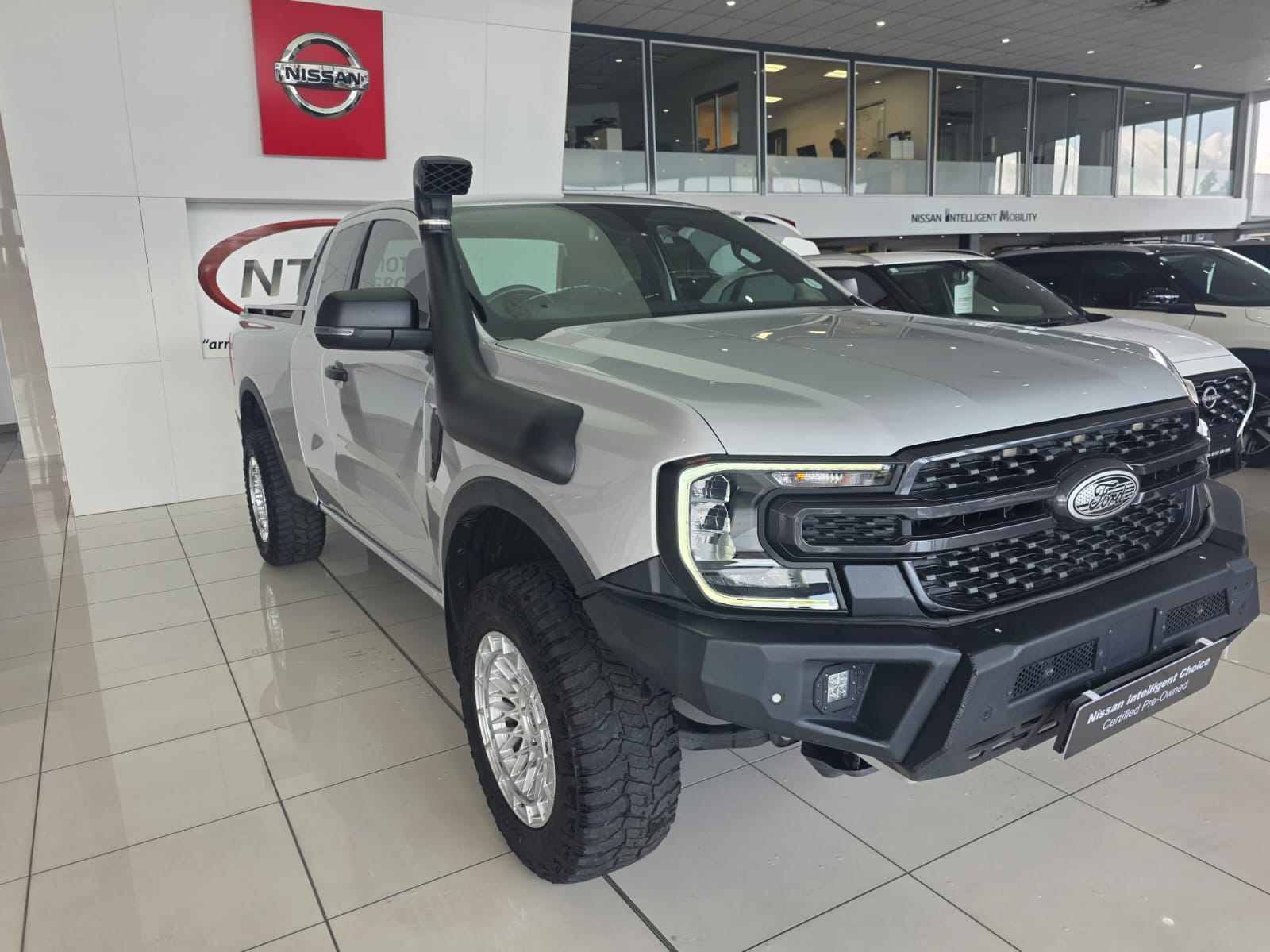 Air Conditioner, Alarm Immobiliser, Alloy Wheels, Auto lights, Bluetooth, Carpet Set, Cartrack, Central Locking, Electric Windows, Metallic Paint, Nudge Bar, Power Steering, Radio CD, Remainder of Service Plan, Remainder of Warranty, Reverse camera, Service History, Side Steps, Smart key, Tonneau Cover, Tow Bar, Window tint. The 2023 Ford Ranger 2.0D XLT HR A T Super Cab P U (4x2) is a 2.0L single-turbo diesel pickup with a 10-speed automatic transmission. It features high-rider (HR) clearance, a 50mm wider track for improved stability, and includes LED headlights, 10.1-inch infotainment with Sync 4A, and a 950kg payload capacity
