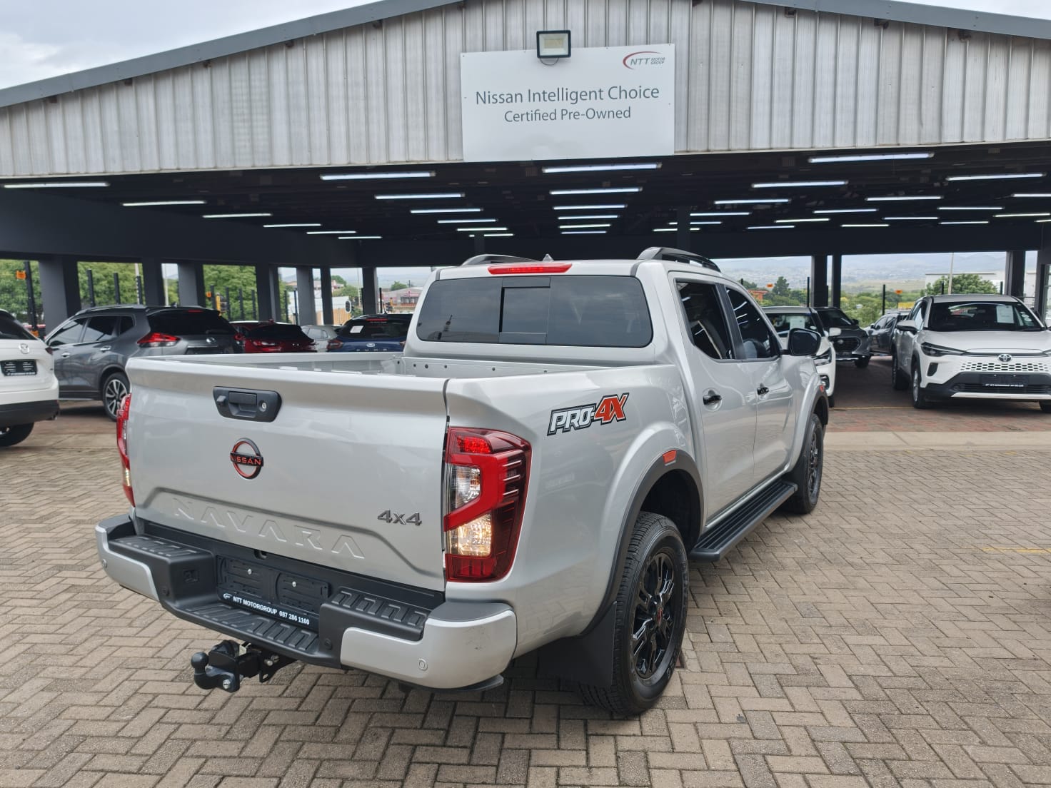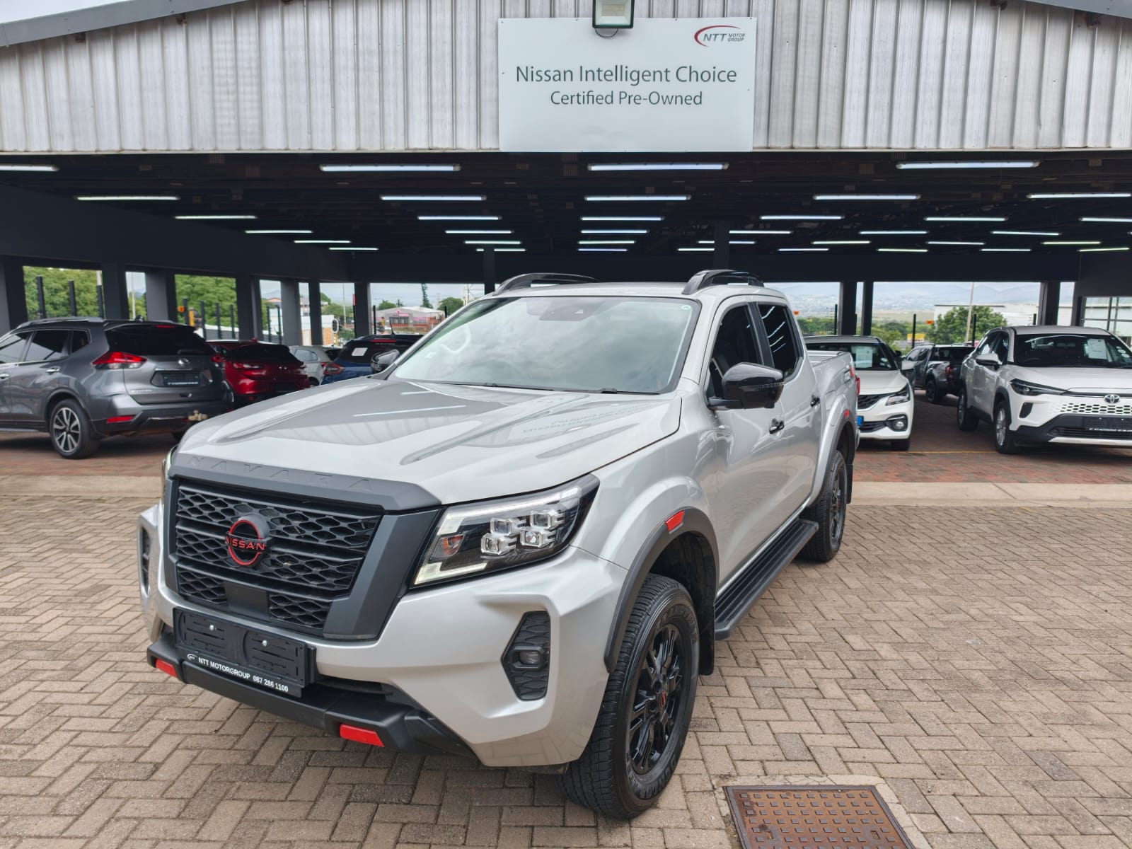 Air Conditioner, Alarm Immobiliser, Alloy Wheels, Auto lights, Bluetooth, Carpet Set, Cartrack, Central Locking, Electric Windows, Leather Seats, Metallic Paint, Power Steering, Radio CD, Remainder of Service Plan, Remainder of Warranty, Reverse camera, Side Steps, Smart key, Tow Bar, Window tint. Style Blacked-out grill, door handles, and mirrors, Wheels 17-inch Alloy wheels with All-Terrain (AT) tyres, Lighting LED Daytime Running Lights and LED headlights, Functionality Roll bar, side steps, and Utili-Track tie-down system , , Seating Leather seats with PRO-4X embroidery, Infotainment 8-inch touch screen, Apple CarPlay, and Android Auto, Camera 360-degree Around View Monitor, Climate Control Dual-zone automatic air conditioning with rear vents, Other Keyless entry, push-button start, and leather steering wheel , , Airbags Front, Side, Curtain, and Knee airbags, Driver Aids Blind Spot Warning, Lane Departure Warning, Forward Collision Warning, Rear Cross Traffic Alert, Stability Vehicle Dynamic Control (VDC) and Trailer Sway Control, Off-road Hill Start Assist (HSA) and Hill Descent Control (HDC)