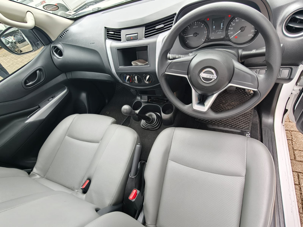 Air Conditioner, Alarm Immobiliser, Bluetooth, Carpet Set, Cartrack, Central Locking, Electric Windows, Power Steering, Radio CD, Remainder of Service Plan, Reverse camera, Service History, Smart key, Tow Bar, Window tint. Engine Drivetrain 2.5 DDTi turbo diesel engine designed for robustness and fuel efficiency, paired with a manual transmission (for the XE 4X2 MT variant), Transmission 6-speed manual transmission, ensuring smooth gear shifts with practical low-end torque suitable for hauling and towing , Capacity Load capacity of 1,148 kg, making it suitable for heavy-duty work tasks , Suspension Dynamics Leaf spring suspension for durability under load, Vehicle Dynamic Control (VDC), Trailer Stability Assist (TSA), , Exterior Features 16-inch steel wheels on the XE variant, with higher trims offering alloy wheels, chrome mirrors, side steps, and roof rails , Interior Comfort Manual air conditioning, power windows with driver-side auto up down, central locking with speed sensing, and power steering , Safety Dual front airbags for driver and passenger, intelligent emergency braking, forward collision warning (higher trims), and stability control systems to enhance safety during driving , Infotainment Connectivity Basic radio and audio system, with higher trims featuring NissanConnect 8-inch touchscreen, navigation, and rearview camera support